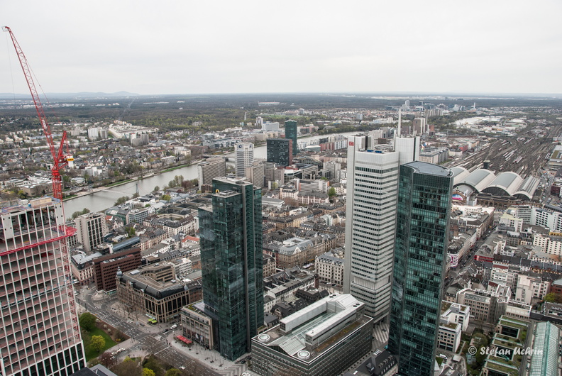 Blick vom MAIN TOWER, Frankfurt am Main. 200 m hoch (vierthöchste Hochhaus in Deutschland).