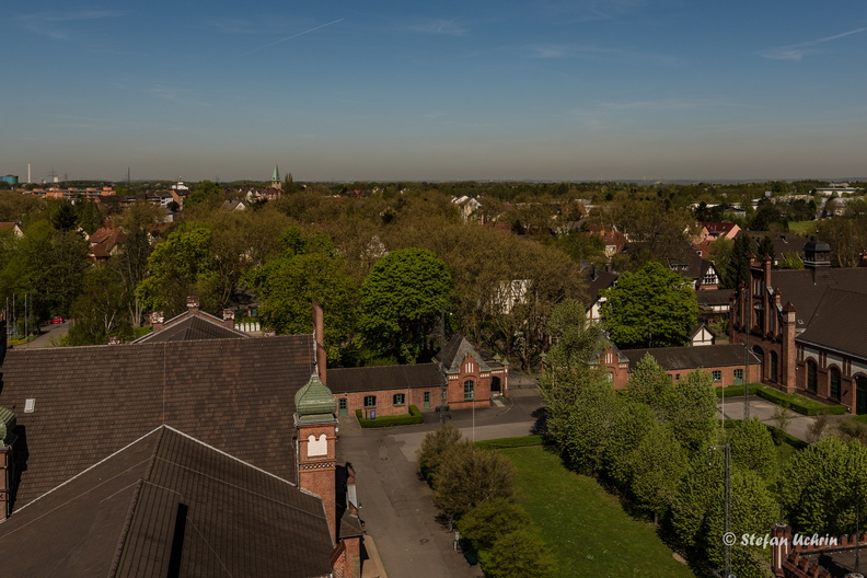 Blick vom Förderturm auf der Schachthalle